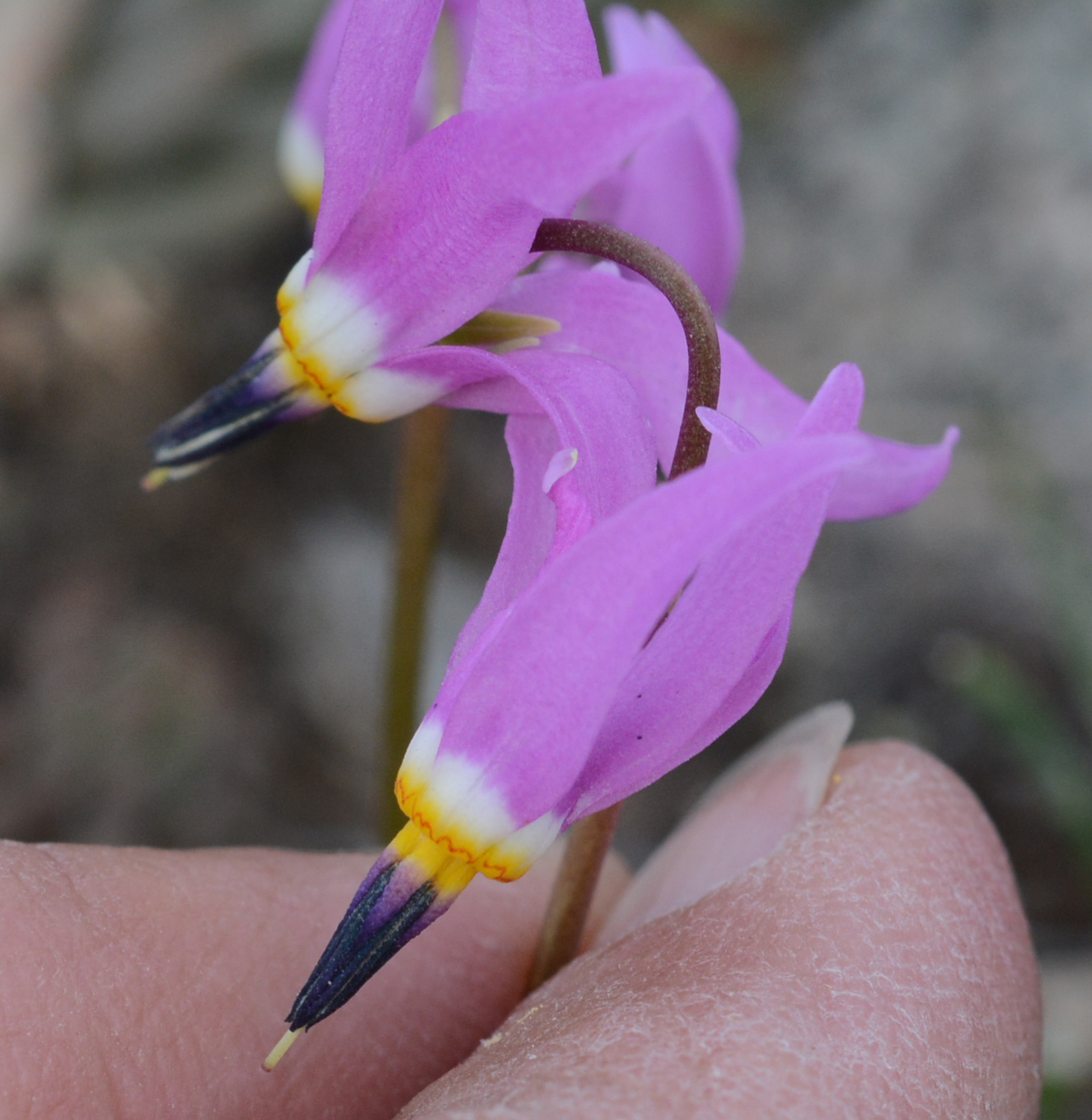 Fritillaria pudica), and dramatic pink Shooting Stars (