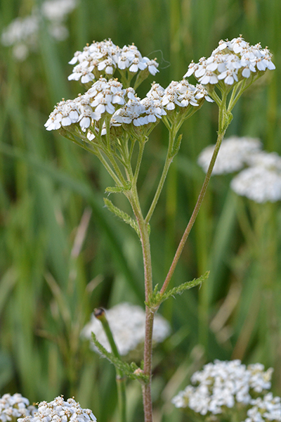 Yarrow – Achillea millefolium – Yarrow grows in temperate zones around the northern hemisphere—circumboreal. It has medicinal qualities historically used by Achilles during the Trojan War (hence the latin name: Achillea) and by our Native Americans, and still today by herbalists. The flat “cymes” of white flowers and soft, fern-like leaves have made this plant distinctive for millennia.