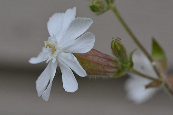 Male flowers of Bladder Campion have a relatively narrow calyx (“bladder”) and the anthers reach just beyond the flared petals.