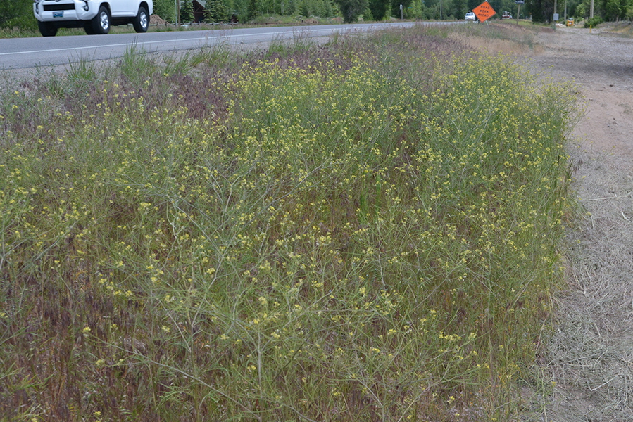 Each Dalmatian Toadflax plant can produce 500,000 seeds and last 10 years in the soil. Here the offspring are spreading.