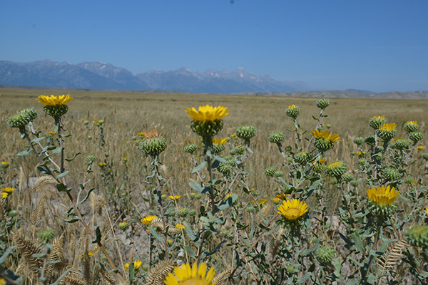 Curly Cup Gumweed – Grindelia squarrosa – A relative newcomer to Jackson Hole from its surrounding native range, it has now migrated in along dry roadside edges, mostly in the south end of the valley.