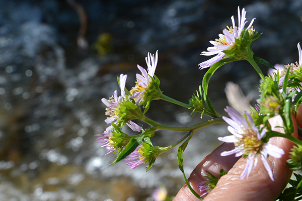 Bracted Aster is found along streamsides and wet meadows. Note the long leaves and many flowers along the stem.