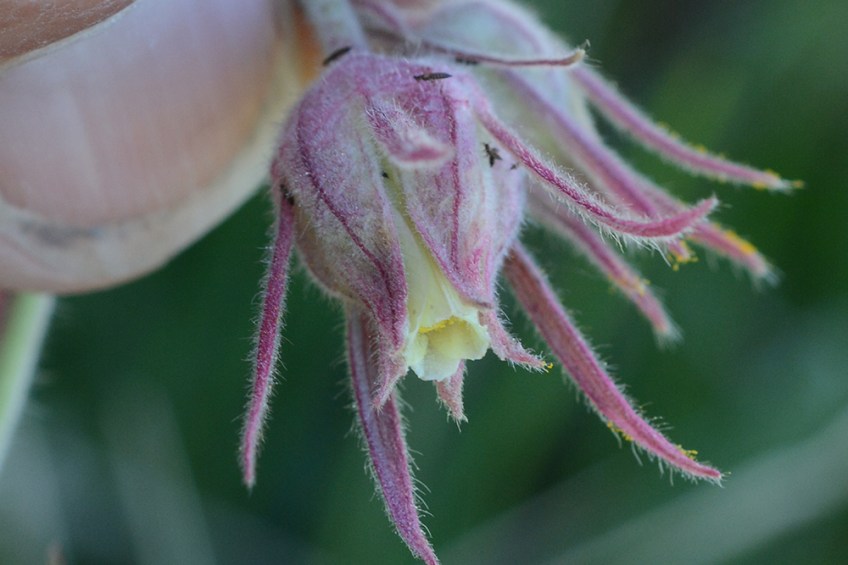 GeumTrif_FlCU_YNP_6.6.16_1a_Q2_crp3x5 Published June 10, 2016 at 1000 × 667 in Jackson Hole Flowers in Early June Five fused maroon sepals (with extra bractoles) surround the pale yellow petals in Prairie Smoke. Together they protect many anthers and pistils inside.