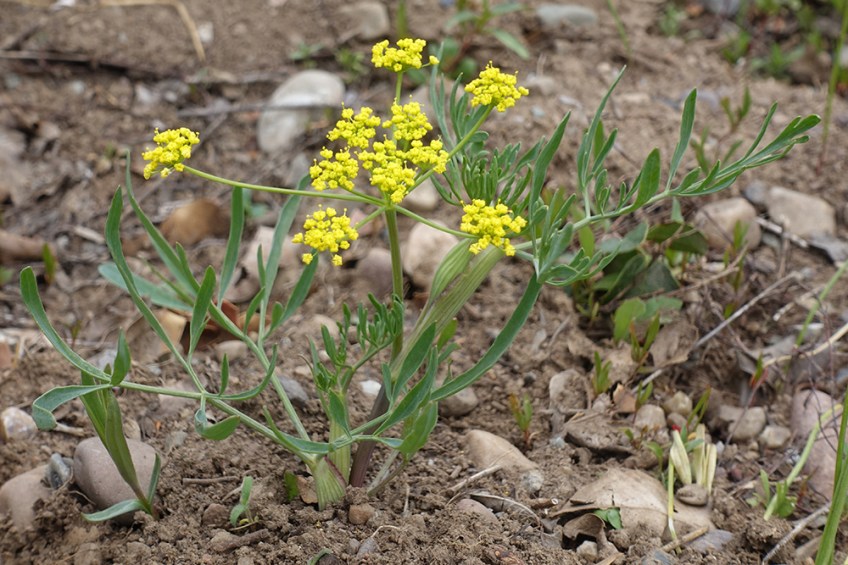 LomaAmbi_habfl_MWRd_5.16.16_2a_Q2_5x3 copy Published June 10, 2016 at 1000 × 667 in Jackson Hole Flowers in Early June The tiny yellow flowers are in umbels typical of the Parsley Family. The leaves are dissected into 9 segments of various lengths and width.