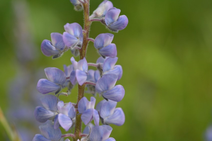 A_LupiArgeRub_flcu_SigMt_61613_Q21sm Published June 28, 2016 at 4496 × 3000 in Forests and Meadows Flower Late June Silvery Lupine flowers look like miniature garden pea flowers. The banner which folds back at the top is smooth. The two side petals–the wings, hide the keel petals inside.