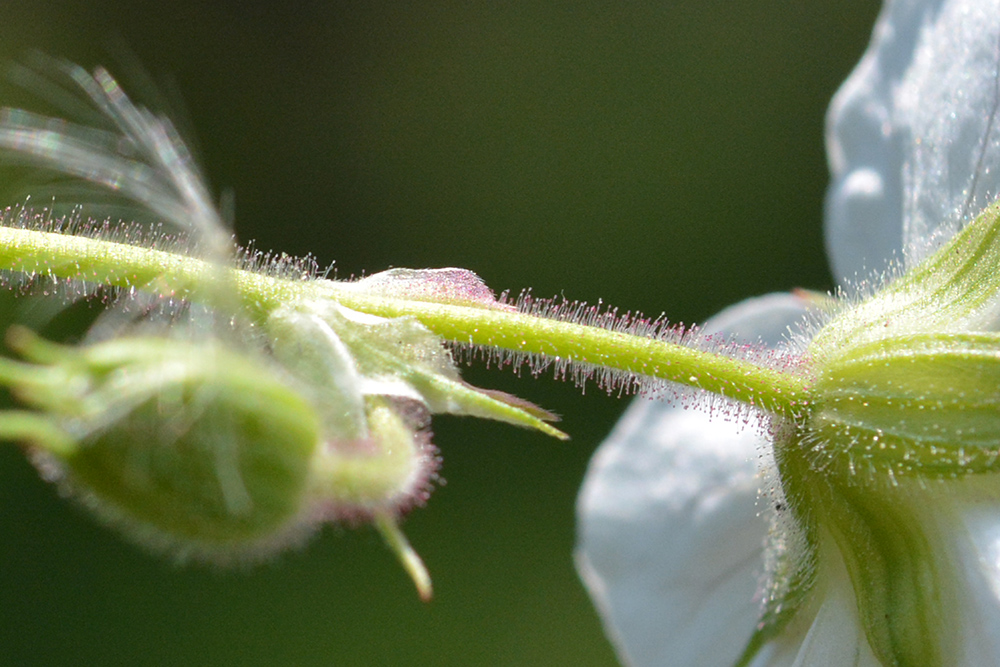 GeraRich_st_GrdVwTr_7813_1_crpsm Published June 28, 2016 at 1000 × 667 in Forests and Meadows Flower Late June The sticky hairs of Richardson’s Geranium are purple-tipped. Think of a gooey forest of defense against tiny invaders.
