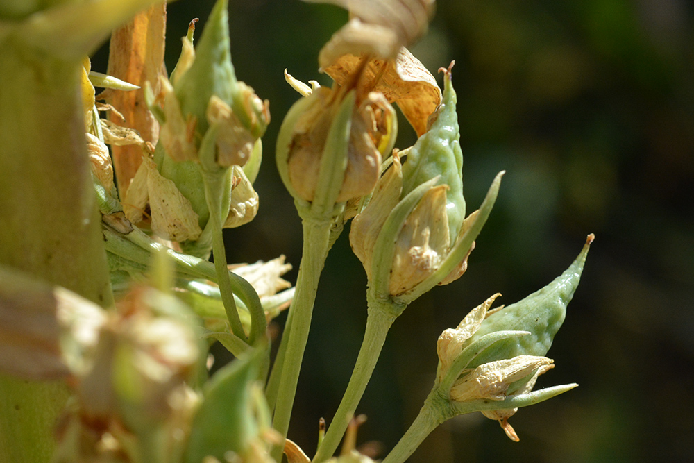 Once pollinated by myriad insects, the plants scatter thousands of seeds and die. Snow depth appears to be the stimulus for flower bud set for the individuals large enough to bloom. Consequently, plants bloom in cohorts, overwhelming the ability of seed predators to eat all the seeds.