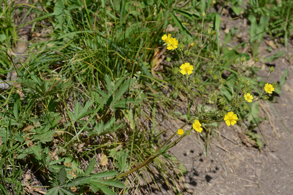 PoteGrac_Hab_StrLk_7.4.16_1a_5x3 Published July 4, 2016 at 1000 × 667 in More flowers blooming in Jackson Hole early July 2016 Graceful Cinquefoil – Potentilla gracilis – is common along trails, leaning out and shining up at you.