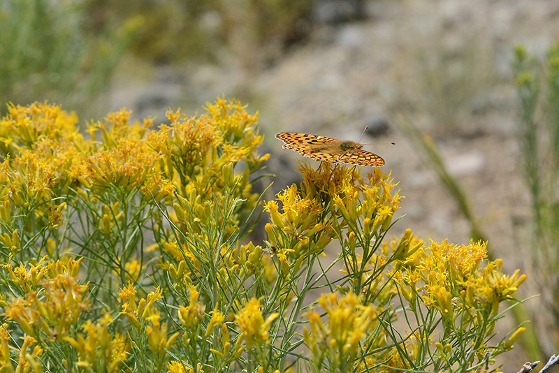 Rabbitbrushes are flourishing right now, with more to come. They are particularly important for supplying nectar at the end of the flowering season: look for myriad butterflies, bees, and other winged invertebrates working them over.