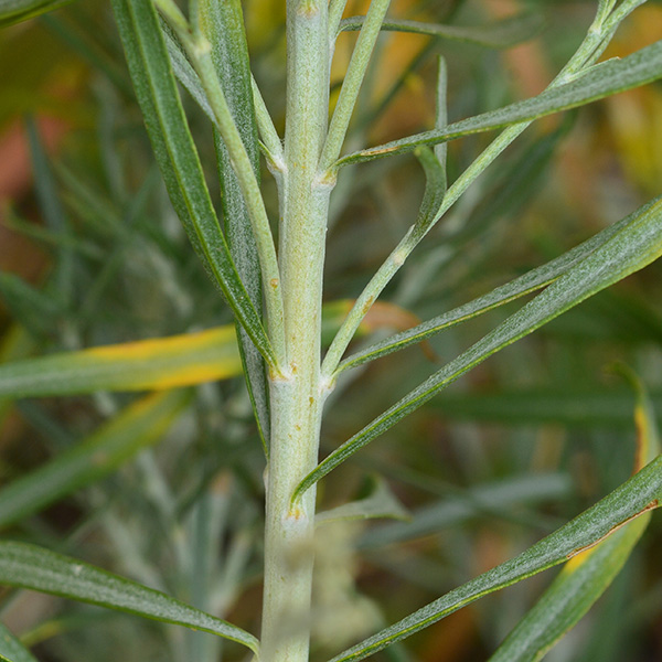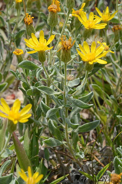 var. nauseosus has white tomentose stems, narrow grayish green leaves, and tomentose (hairy) involucral bracts. 1-2’ tall.