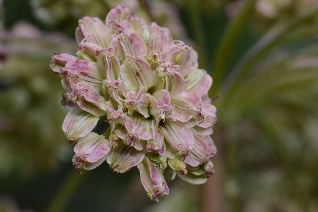 If you observe closely, you can see the flowers change flowering stages. First the anthers (above) produce male pollen while female part located in the center is still undeveloped. Then the anthers wither and the female stigma matures (below) ready to receive pollen from another flower. This progression from male to female avoids flowers self-pollinating. Flowers at the bottom of the inflorescence bloom first.