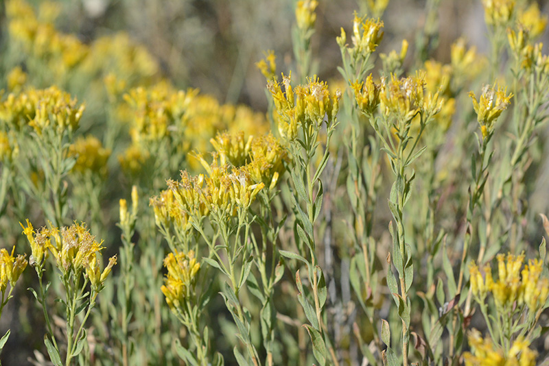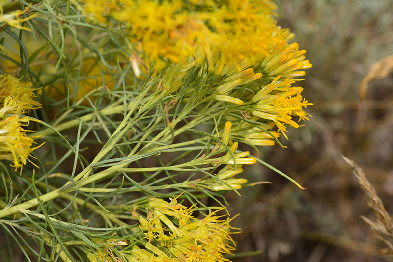 We have a 4 common varieties of rabbitbrushes in Teton County. These shrubs typically range from 1-3 (4)’, grow in relatively dry, sunny conditions along roadsides and hillsides, often on disturbed soils. They stand out at this time of year. Once in one genus, they are now split into two. All have linear leaves and bunches of flower heads with only yellow disc flowers, giving them a similar appearance. The varieties can be difficult to tell apart!