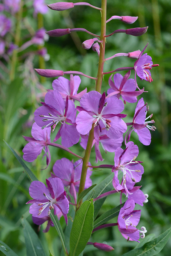 In high meadows where fireweed can be abundant, hummingbirds are important pollinators. They load up on nectar before migrating south. Hummingbirds lap, don’t suck, nectar. They have little bristles at the tips of their tongues and rapidly dart their tongues back and forth into their long beaks while hovering. Truly a feat.
