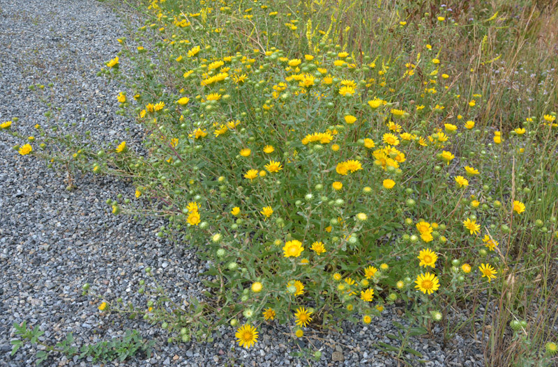 Curly Gumweed (Grindelia squarrosa ) has colonized along main highways and park roads. Early herbarium records indicate that they have naturalized relatively recently in the county.