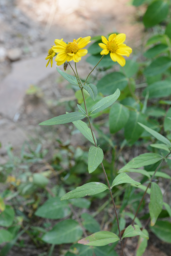 Showy Goldeneye (Vigueria/Heliomeris multiflora) is abundant along roads, in meadows, and up hillsides ranging from Jackson Hole to Yellowstone National Park. The cheerful yellow heads wave atop slender 2-3’ stems with mostly opposite leaves. Sometimes the rounded ray flowers are visibly lighter toward their ends—under UV light they look like bulls-eyes to pollinators. These “composite” flowers with both ray and disc flowers provide a showy and easy place for pollinators to land and gather pollen and nectar from many tiny flowers. Like going to a big box store.