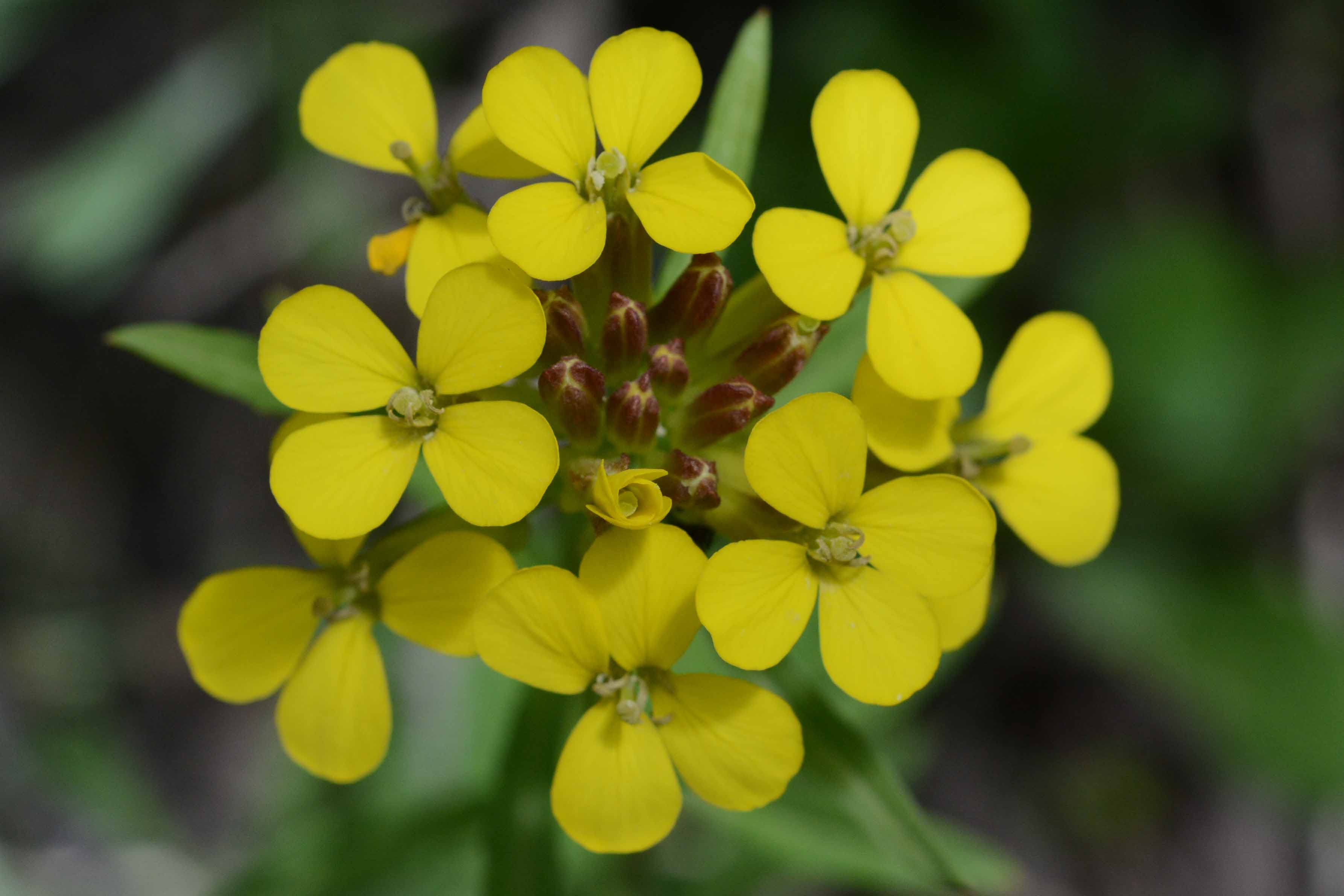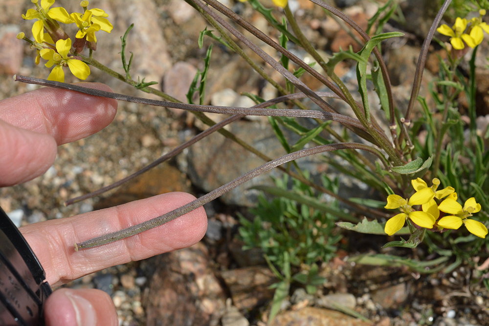 Rough Wallflower – Erysimum asperum – grows to 18″ with several yellow flowers at the top. Flowers in the Mustard Flower typically have 4 sepals, 4 petals, 6 anthers – 4 long, 2 short, and a single pistil with one stigma.