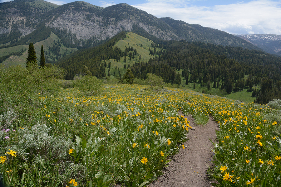 There are so many places to go and see wildflowers right now. Most of these pictures were taken driving around Antelope Flats, out by Kelly Warm Springs, and along the inner park road in Grand Teton National Park. Flowers can be found hiking up around Cache Creek just to the east of Jackson, or Trail Creek just west of Wilson. Munger Mountain and Ann’s Ridge (photo above) to the south have similar open habitats. Note: While flowers may be fading at lower elevations or in more southern parts of the valley, they may well be blooming fresh to the north or higher elevations.
