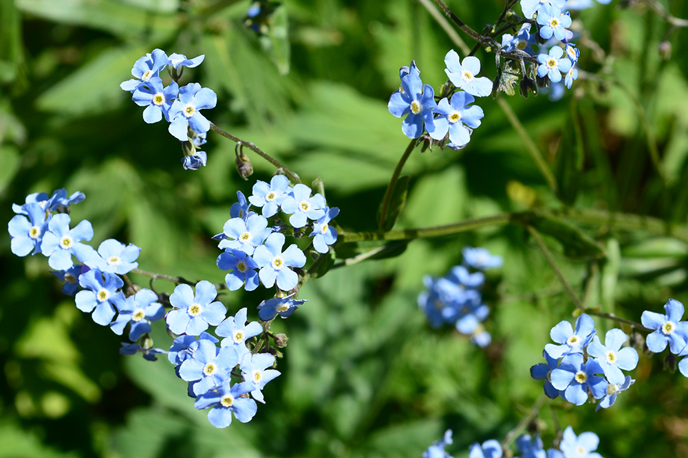 Stickseeds – Hackelia spp. – are members of the Borage Family along with For-get-me-nots – Myosotis spp. – and bluebells (above).