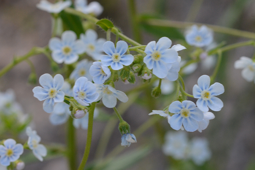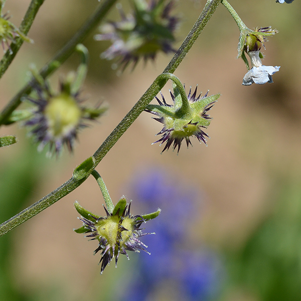 They have white to blue demure flowers open to the sky; however, they produce pesky fruits that attach to socks and dogs in order to make their way to new ground away from domineering parent plants. Although they appear delicate, stickseeds have an evolutionary determination to succeed.