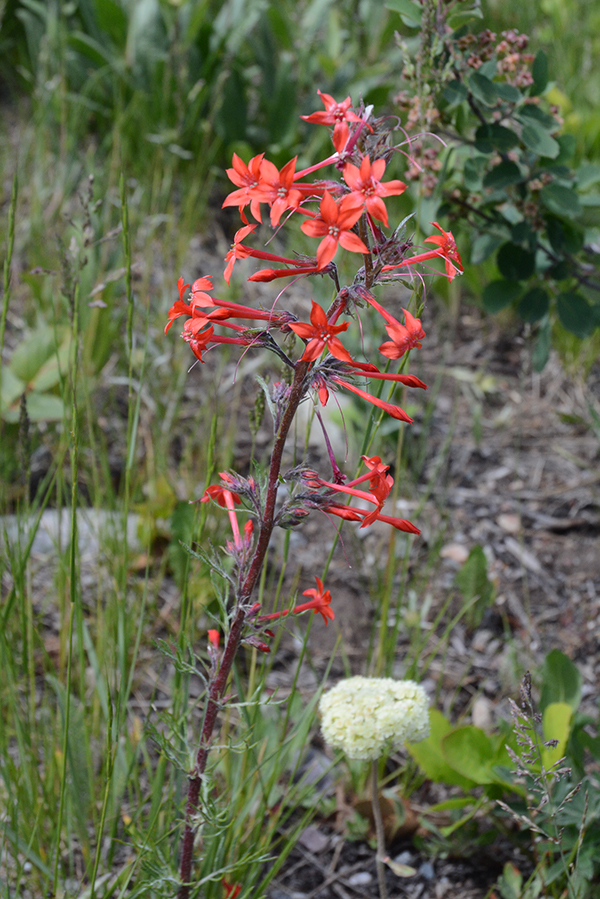 Later in the year, or in other parts of the west, Scarlet Gilia flowers may bloom more pink to white, attracting moth pollinators. The flowers have an unappealing skunky fragrance to us people.