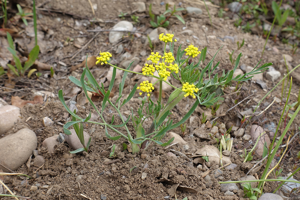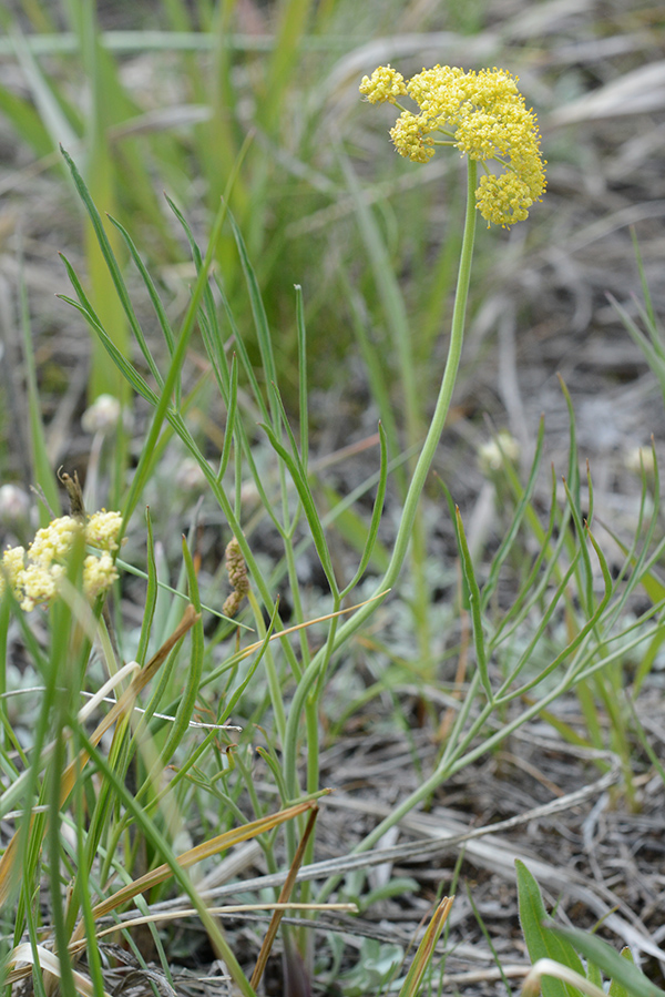 Nineleaf Biscuitroot – Lomatium triternatum var. platycarpum (now L. simplex) – As the name implies, the leaves are thrice divided in threes to from nine linear lobes and look grass like.