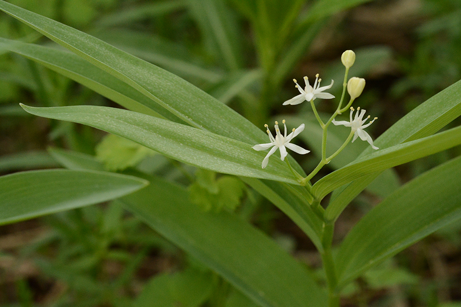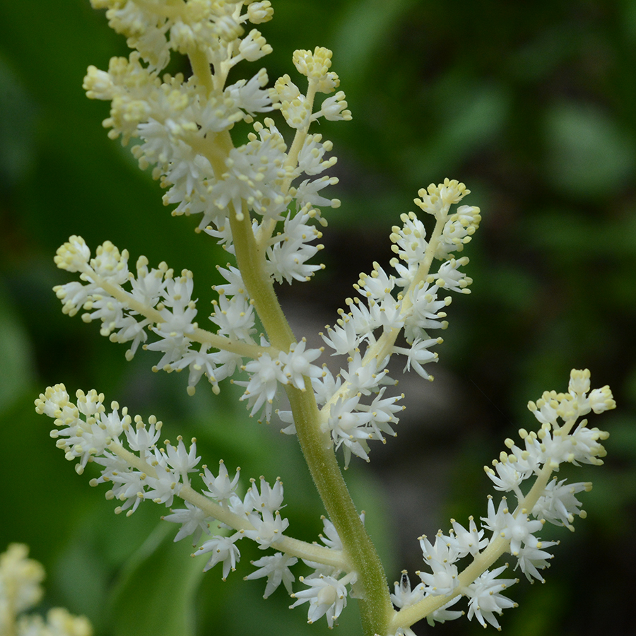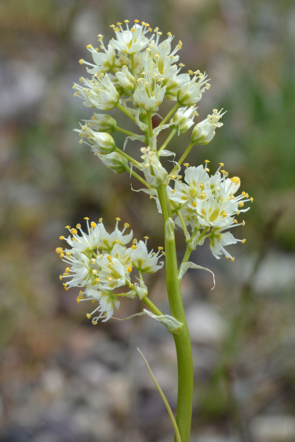 In the Lily Family, Death Camas is a bulb plant, and spreads vegetatively by bulblets. The leaves are grass-like, and the flowers are held in a panicle. Greenish yellow nectar glands form at the base of the 6 white tepals. When sepals and petals are similar they are called tepals, which is a frequent trait of members of the Lily Family, such as Easter Lily.