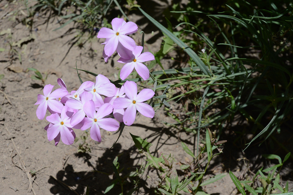 Long-leaved Phlox – Phlox longifolia – have mostly pinkish, tubular flowers whose petals flare out at the tops. Plants grow to 6” or more, often sprawling. Relative to our earlier blooming phlox, the leaves are long at 2-3”, narrow, opposite, and slightly hairy. Flower fragrance is alluring to long-tongued butterflies, moths, and some bees which land on the flared petals and dip their probosci deep inside.