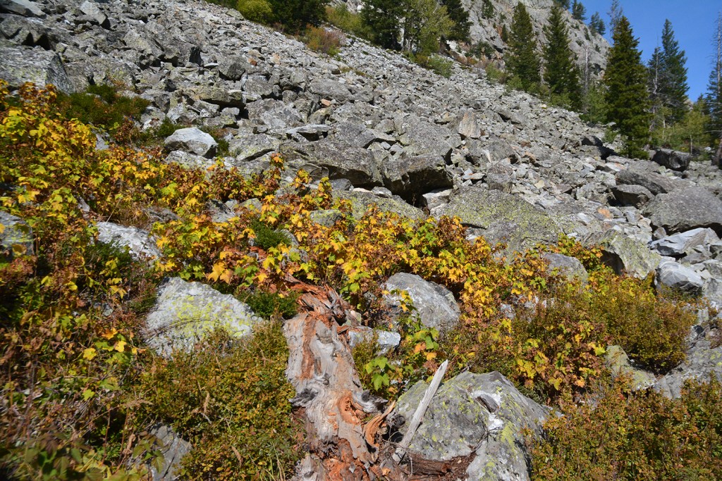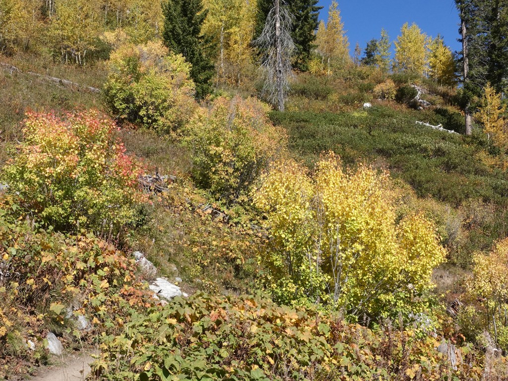 The 2-3’ shrubs stand out along the north side of Jenny Lake and elsewhere.