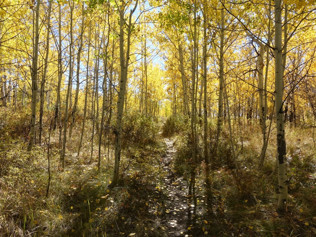 Fall colors are glorious right now and they won’t last long. Along the park trails, up the sides of canyons, across the valley, aspens and shrubs are at their peak fall brilliance. This quick posting is to encourage you to take a hike or a drive to immerse yourself in the various hues above, below, and all around you.