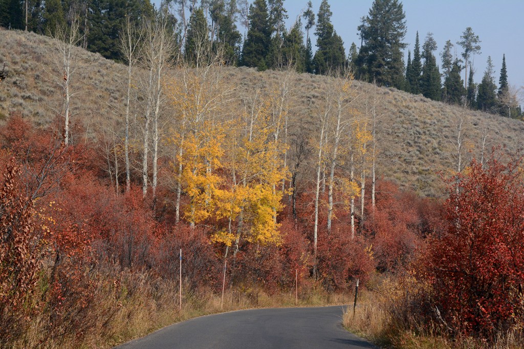 The more colorful Bigtooth Maples – Acer grandidentatum – show up in in the canyons south of Jackson. With their several lobes and ‘U” shaped indentations (sinuses), the leaves of these shrubby maples of the West look very similar to those of Sugar Maple – A. saccharum – magnificent trees of the East