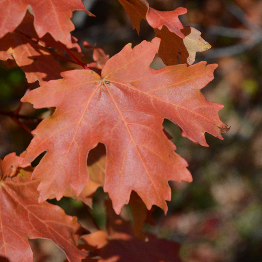 The oppositely arranged, mostly three-lobed leaves of Mountain Maple – Acer glabrum – tend toward yellow-orange.