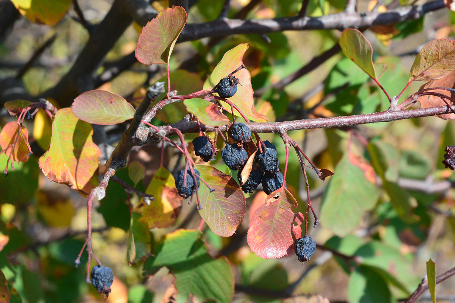 Abundant fruits of Black Hawthorn – Crataegus douglasii – are still hanging on and attracting bears along the Moose-Wilson Road and elsewhere.
