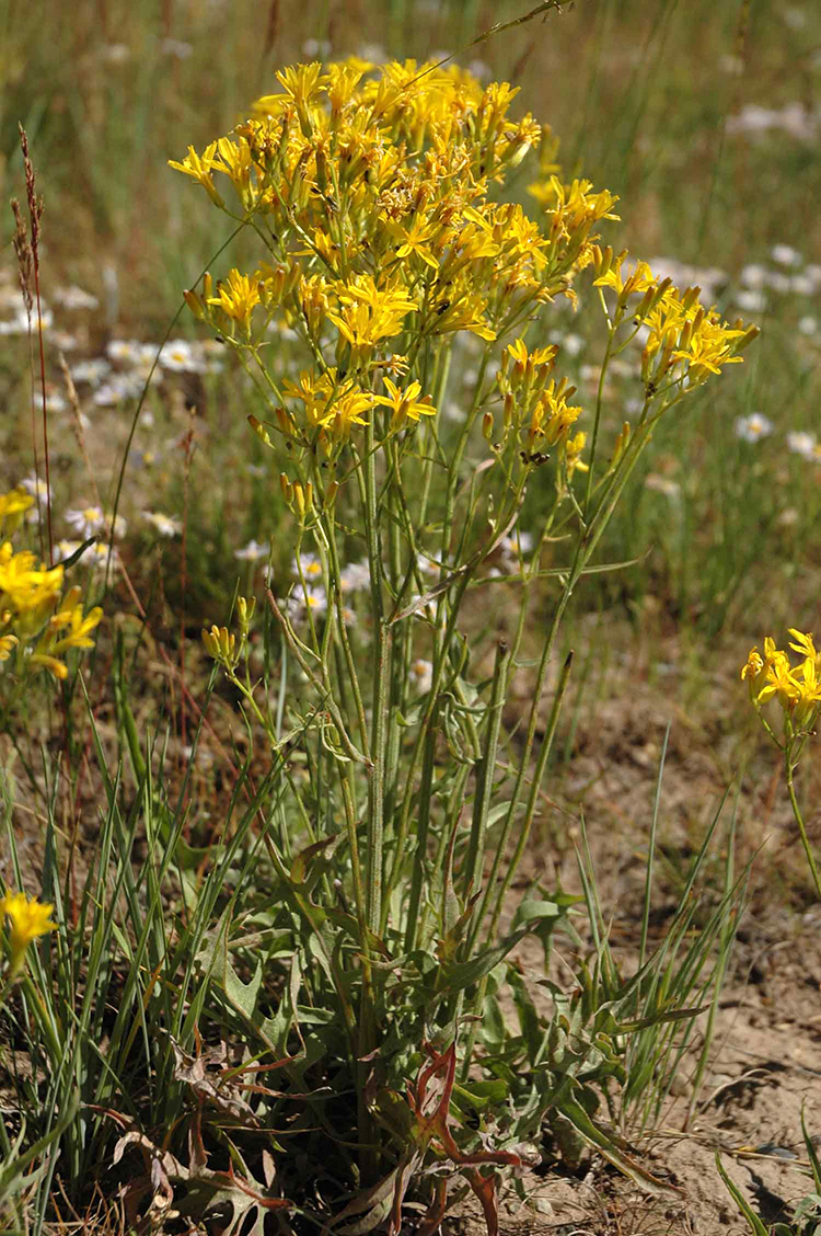 Hairy False Golden Aster – Heterotheca villosa – has hairy cypselas each with a pappus of fine hairs at the top. Note there are many fruits on the platform, typical of the Aster/Composite Family.